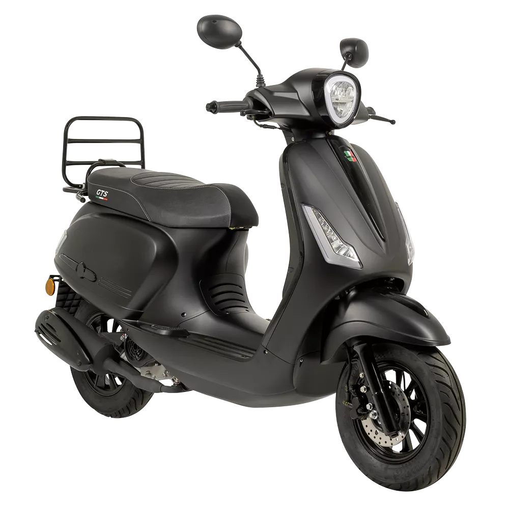 De GTS Bravo is de moderne scooter in het GTS Benelux assortiment. Deze scooter is bijzonder omdat de brandstoftank onder de voetenplank is gemonteerd. Hierdoor heeft de GTS Bravo extra bagageruimte onder de buddyseat. Daarnaast is het zwaartepunt van de scooter laag. Zo is een extra goede wegligging gegarandeerd. De Bravo is voorzien van LED-koplamp, LED-richtingaanwijzers, LED-achterlicht, running-daylight en een stevige bagagedrager. Een complete scooter die ideaal is voor woon-werkverkeer!